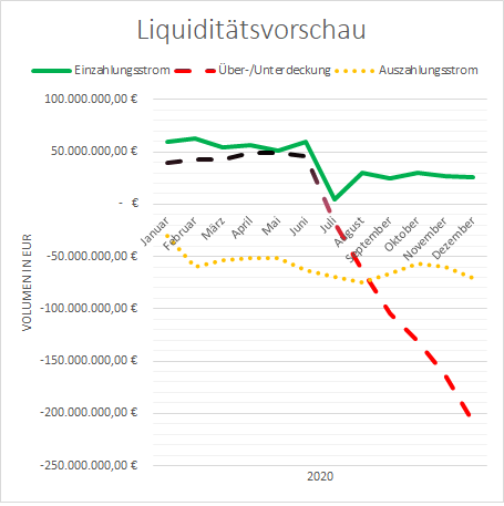 ein Jahr im Voraus erkennbar. Totaleinbruch der Einzahlungsströme erfordert